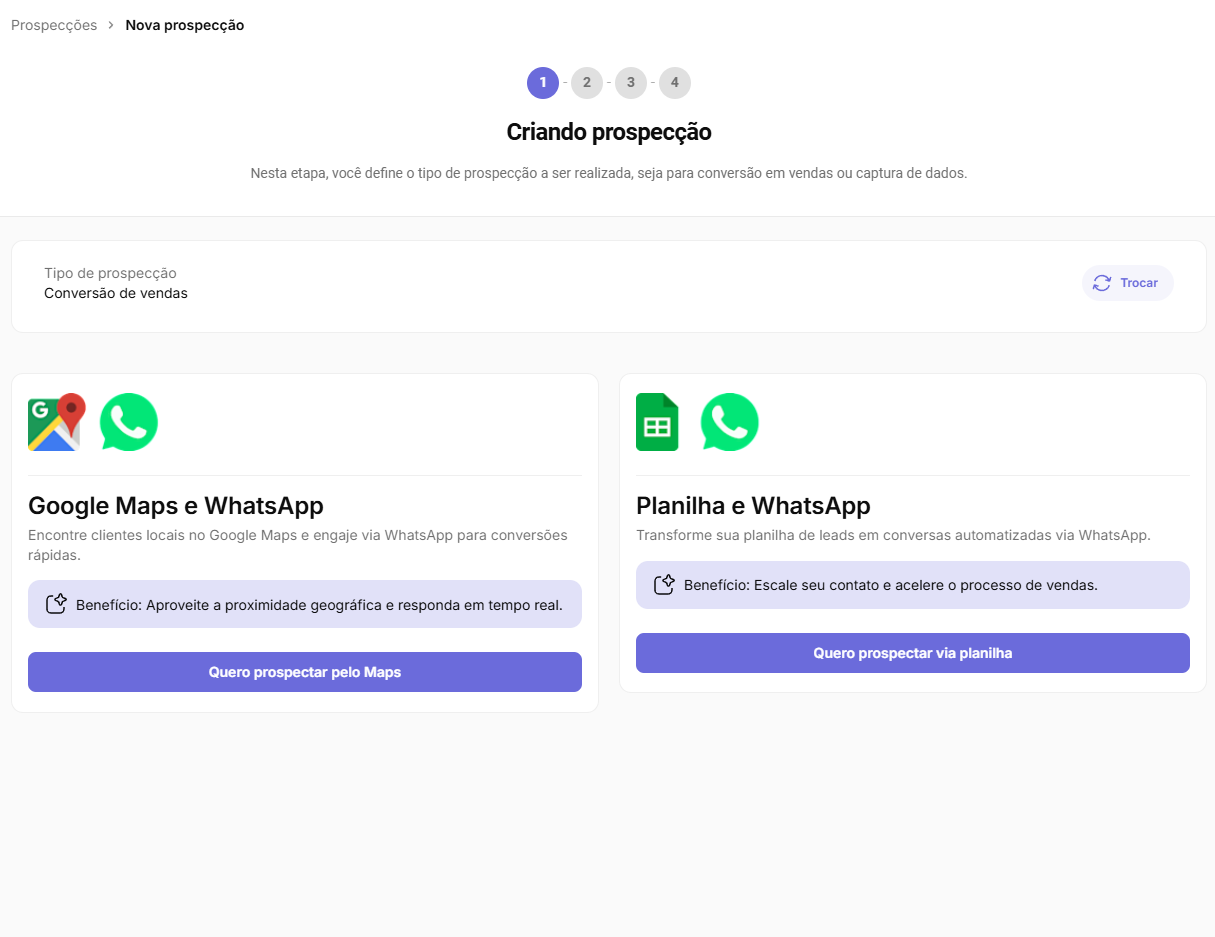 A VELO se conecta diretamente ao Google Maps para buscar leads qualificados com base na sua localização e interesses, automatizando o processo de prospecção.