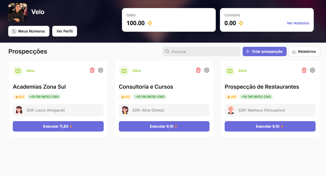 Com VELO, você automatiza a busca por empresas ideais direto no Google Maps, transforma dados em conversas e gera oportunidades mesmo enquanto sua equipe foca no que importa.